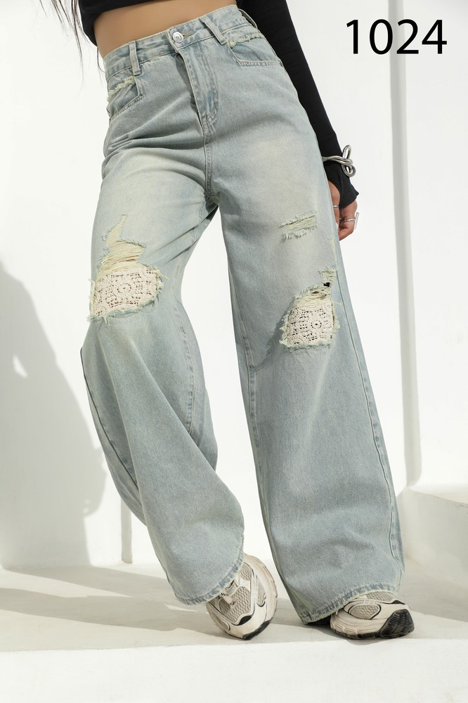 شلوار بگ زنانه ترک مکرومه دوزی قد۱۱۲ پارچه جک پات لخت و ریزشی کدel1024