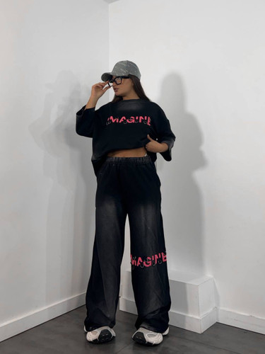 ست اویشو زنانه شامل شلوار بگ زنانه و سویشرت، نمای جلو با تن‌خور آزاد و استایل روزمره شیک