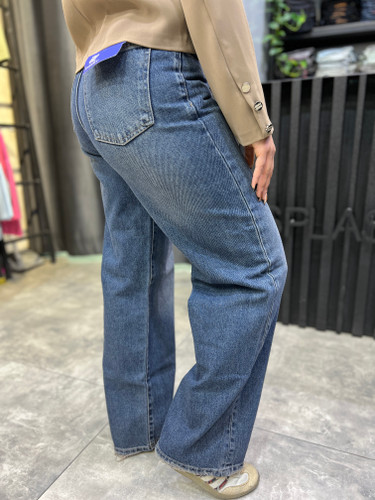 شلوار جین نیم بگ زنانه رنگ آبی کثیف شور قد ۱۰۸ جینولی کد۲۹۰۴۰۳
